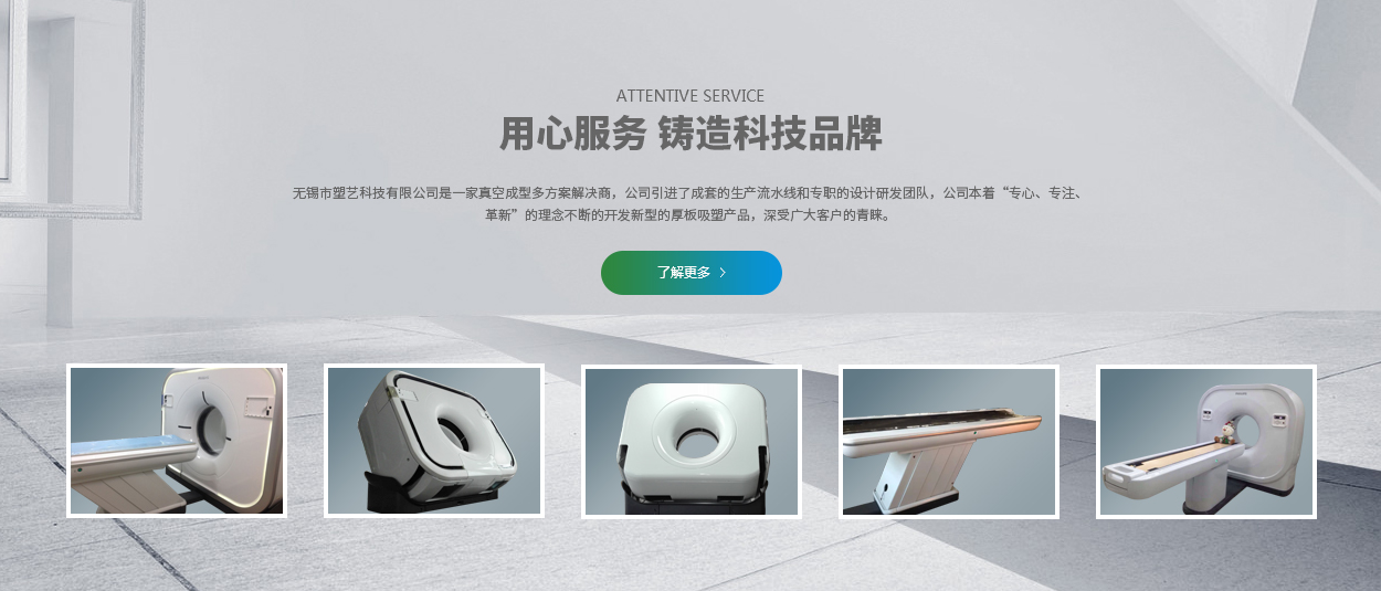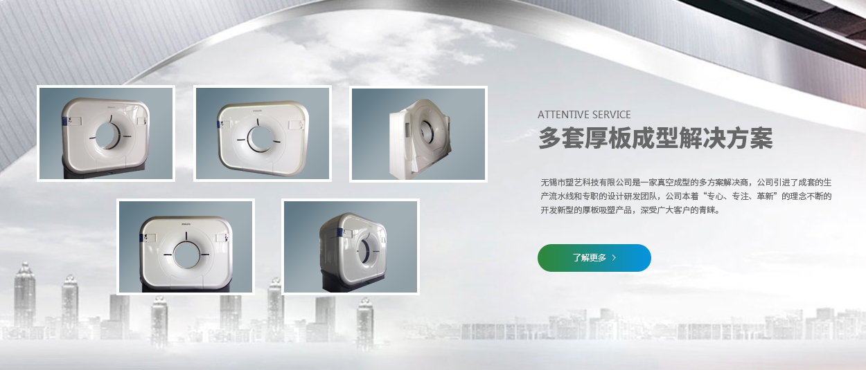 無(wú)錫塑藝科技有限公司成立于2006年。是一家集研發(fā)、生產(chǎn)、經(jīng)銷為一體的真空成型解決方案有限公司,主要生產(chǎn)厚板吸塑制品、薄片吸塑制品、滾塑制品、機(jī)加工制品、模具設(shè)計(jì)制作以及各種環(huán)保包裝材料。